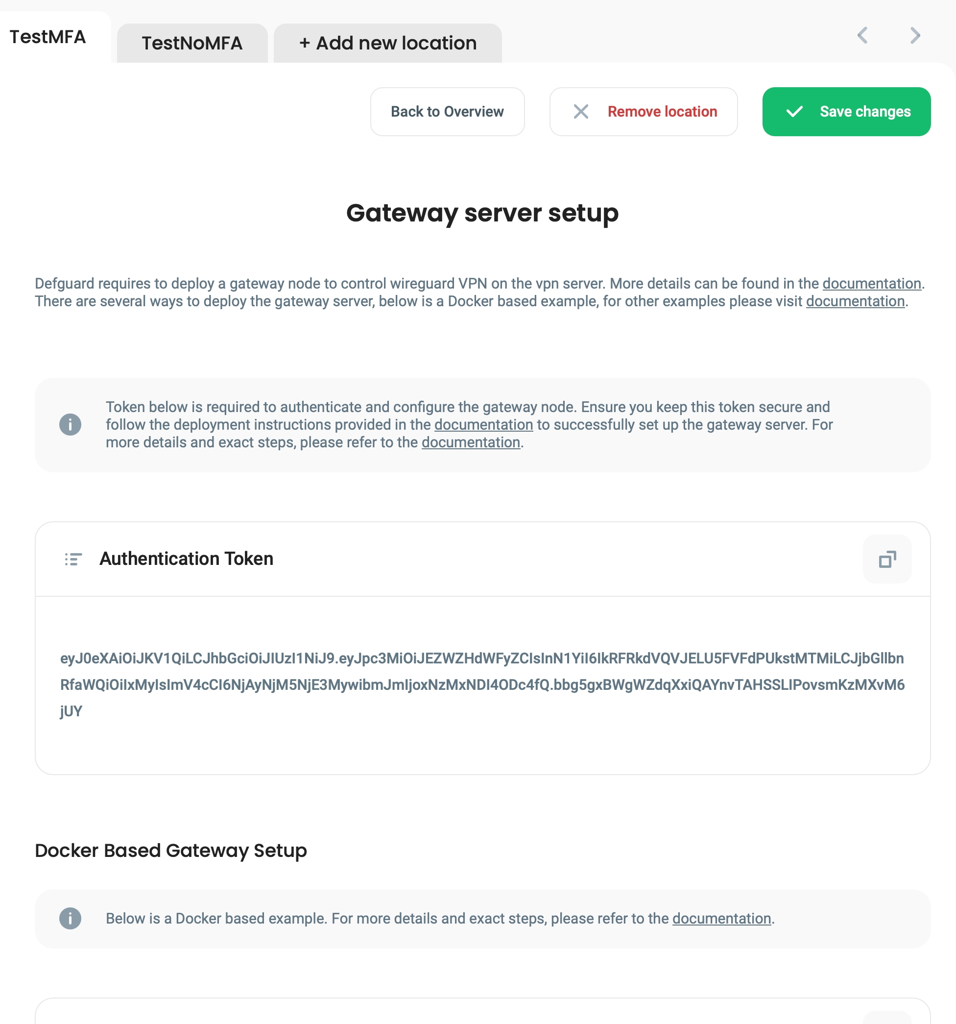Token can be obtained when you go to VPN Locations -> Edit location settings (in top right corner) -> Select the desired location -> the right panel describes how to deploy the gateway for the location as well as lists the gateway authentication token: