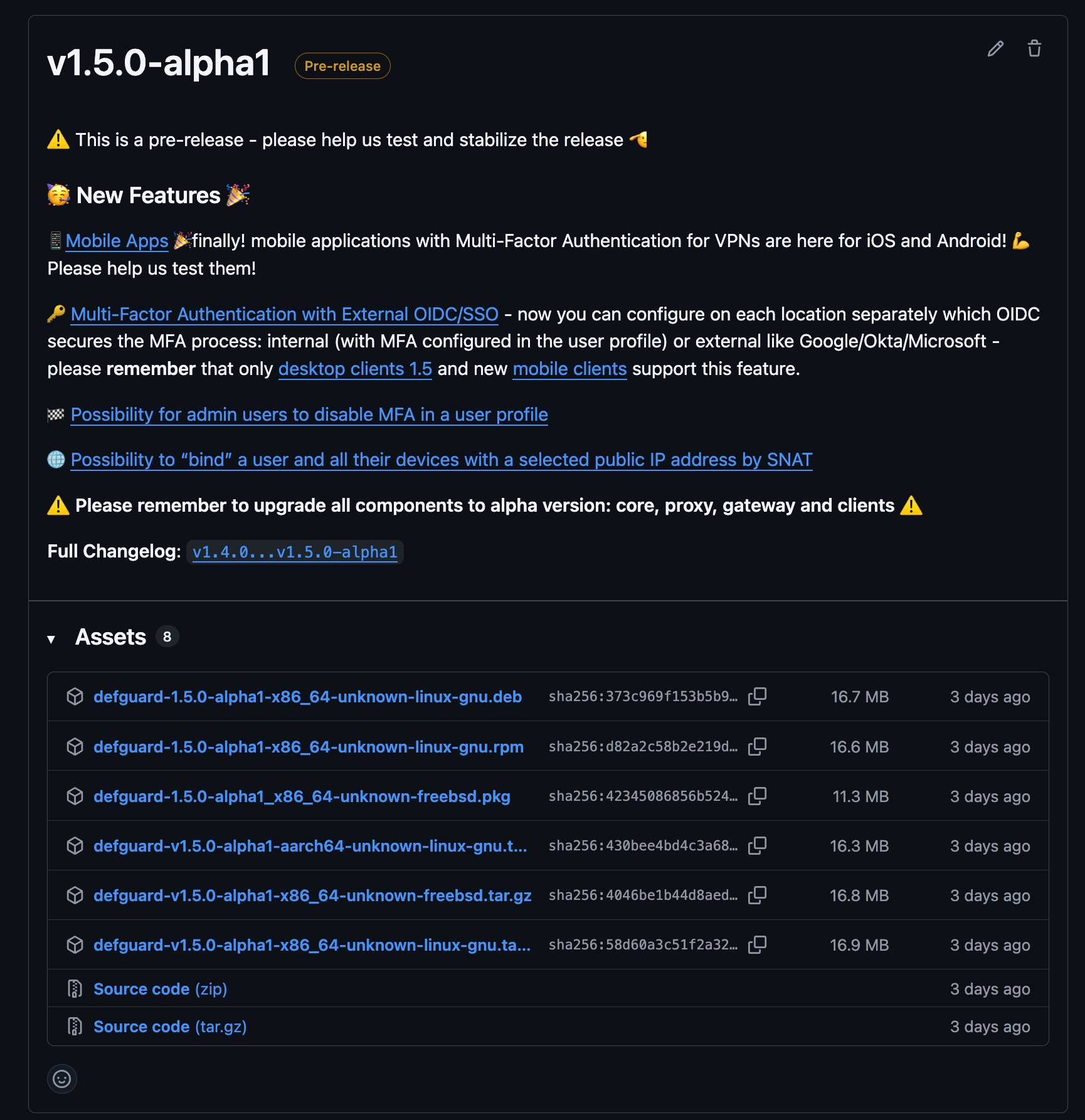 Each GitHub repository (core, gateway, proxy, and client) has its pre-release versions available on the GitHub release page. This is where you can download binaries or packages with the pre-release, e.g.: