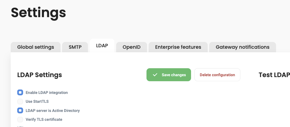* If you used the LDAP integration previously, it will be off by default after upgrading. You will have to manually enable it in the settings in the LDAP tab:\\