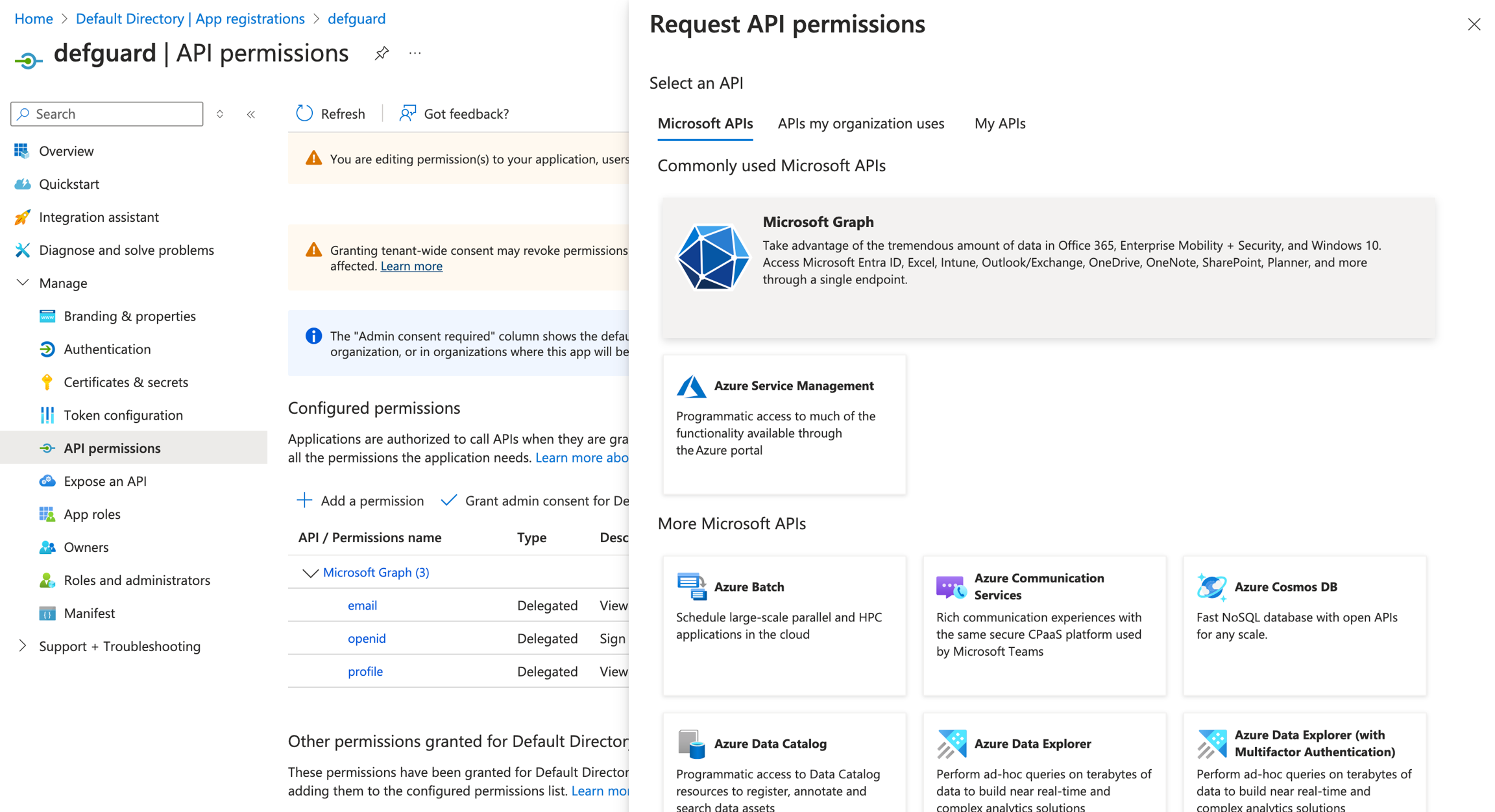Select "Application permissions", as Defguard will perform the synchronization in the background.