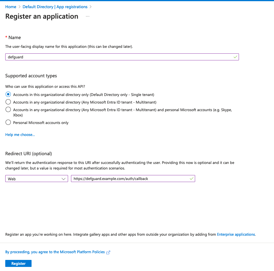 Defguard supports synchronizing groups' and users' states based on your Microsoft directory.