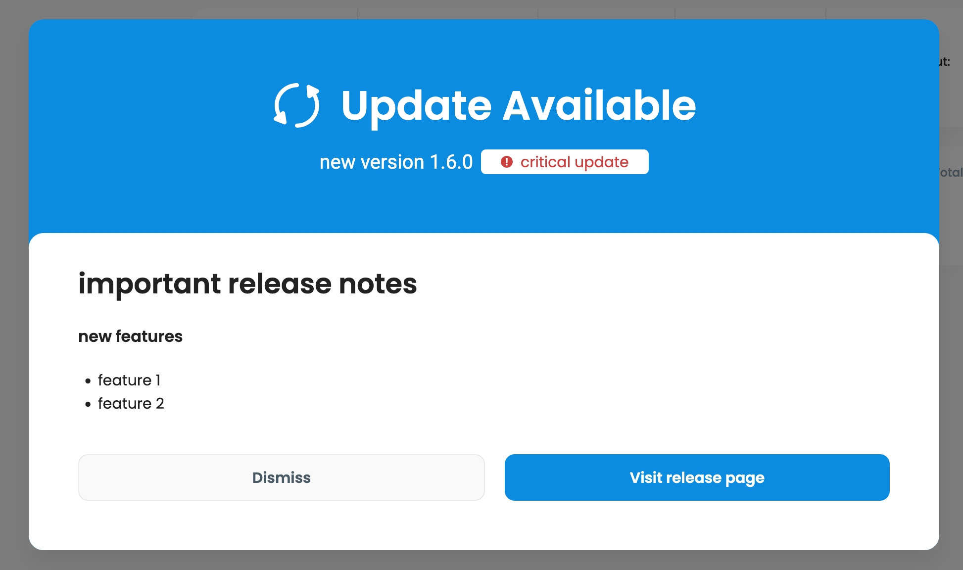 Defguard will periodically (every 6 hours) check for a new version, If there is one that is newer than the current one, a toast will be displayed in the admin dashboard.