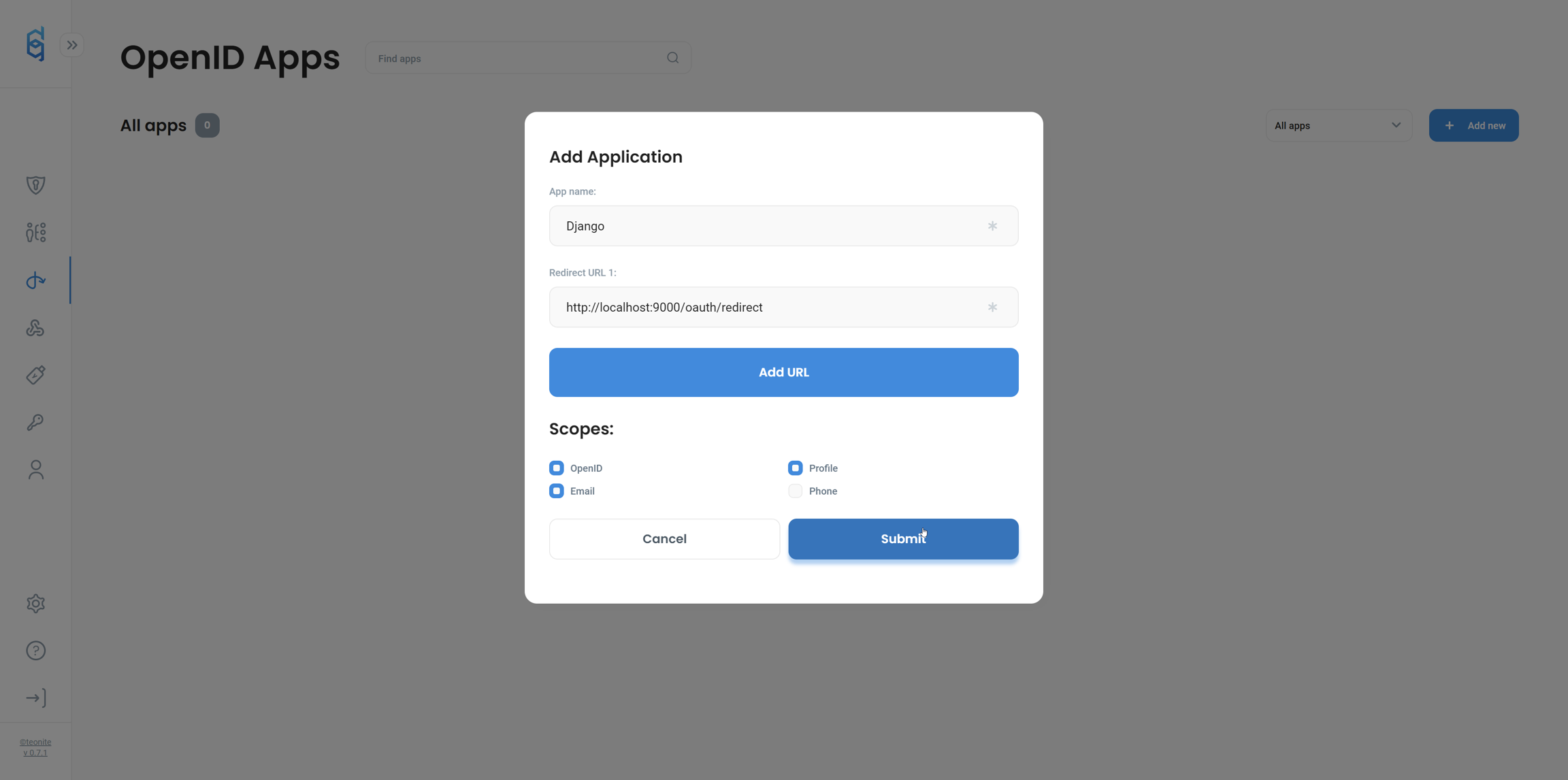 To do that, navigate to OpenID panel and add new client as shown below.