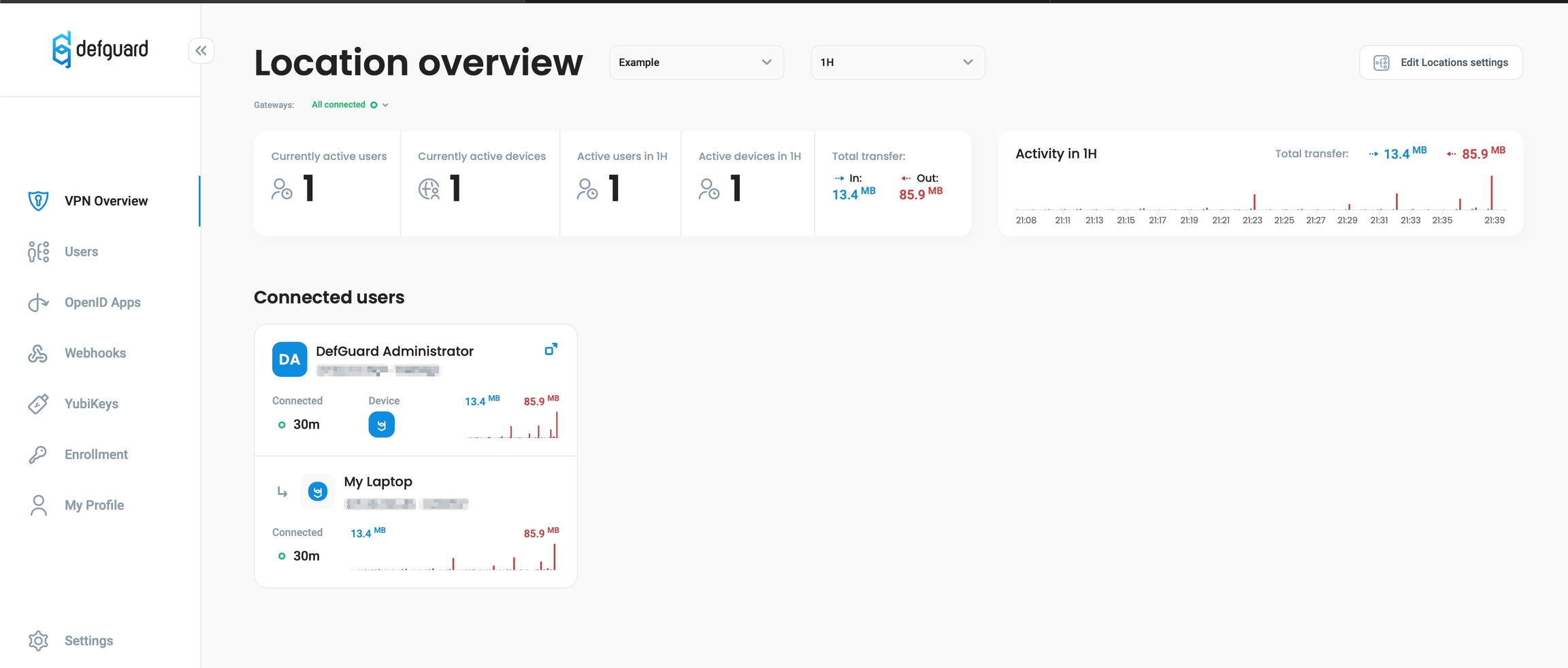 As an administrator, you will probably be happy to see this - Defguard VPN dashboard: