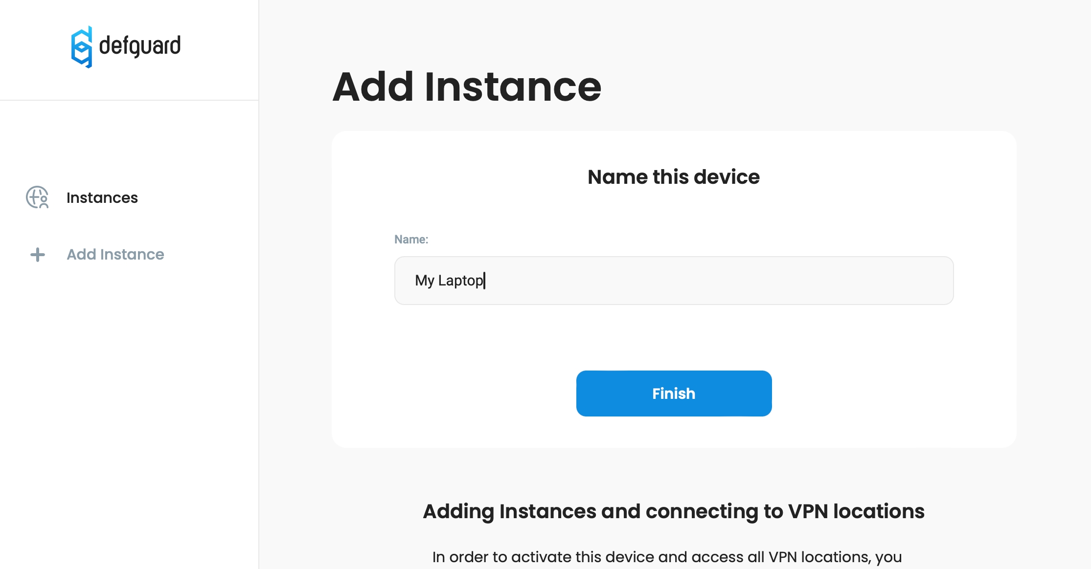 After that, the client will ask you to name your device (however you like), after that click finish:
