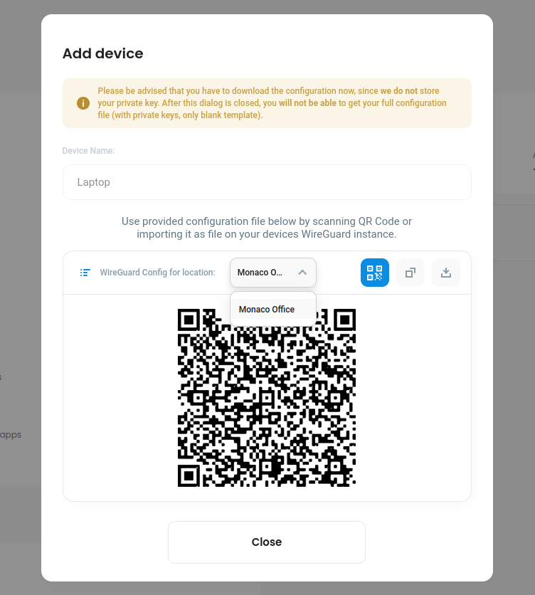 If you have multiple VPN locations - you can choose to download configuration for each of the location - by selecting the location as shown