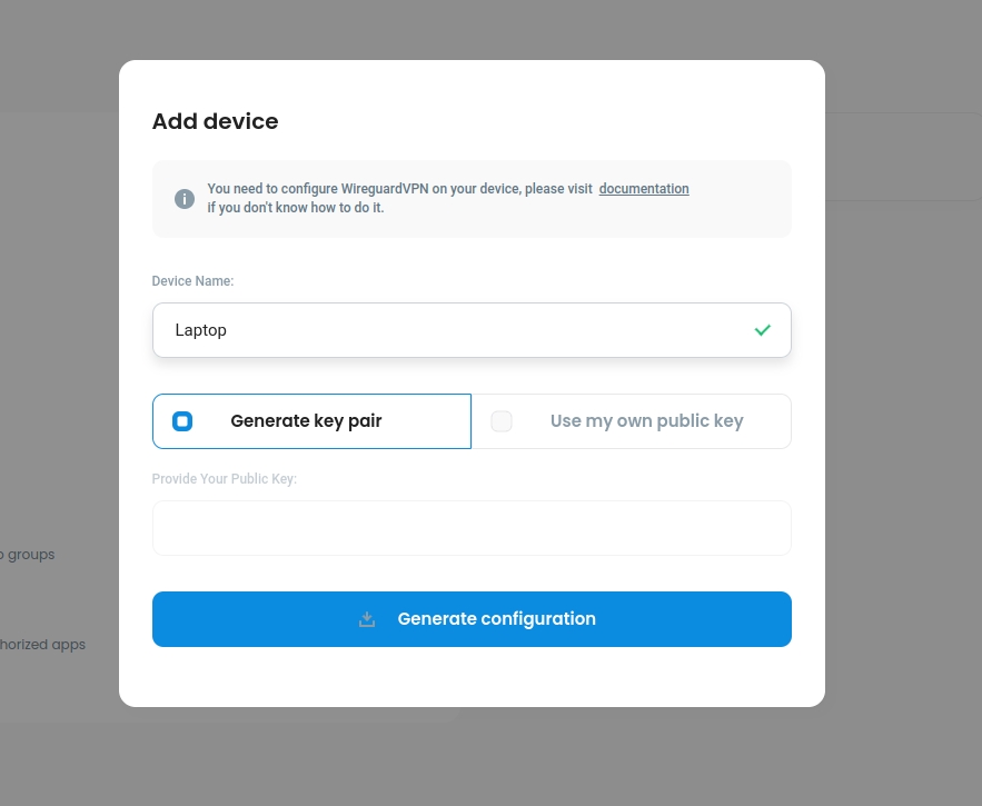 Please note that WireGuard clients other than Defguard Desktop Client do not work with Multi-Factor Authentication and they can only be used for Locations without MFA - as the only client supporting this feature is our desktop client.