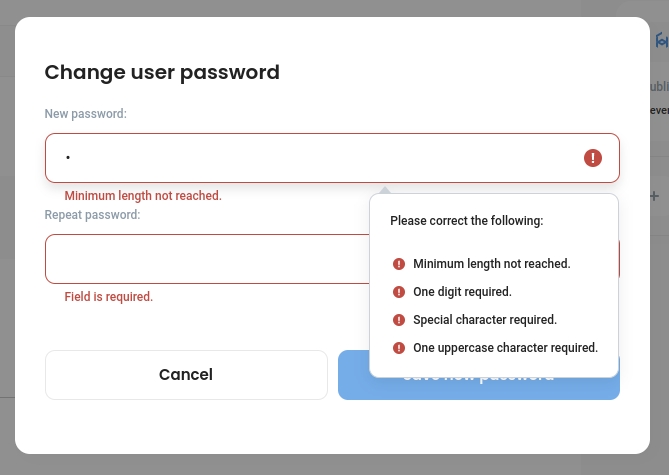 Set up a new secure password according to the password rules and click Save new password