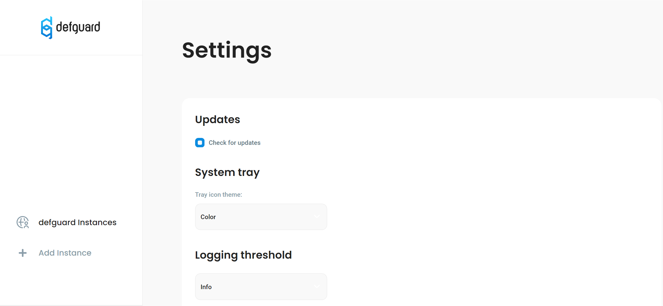 Desktop client provides an easy way to access VPN locations of multiple Defguard instances via user-friendly UI.