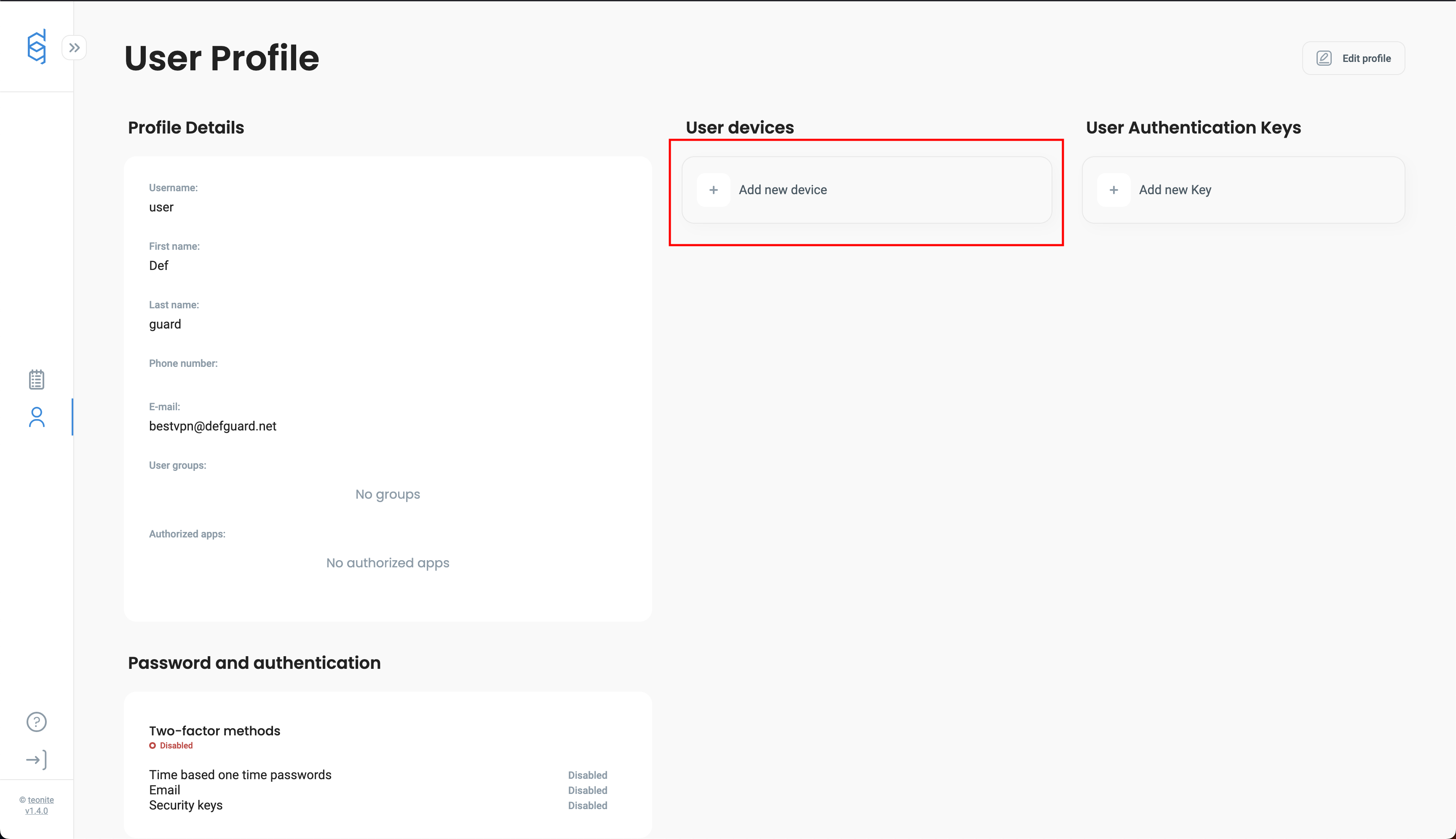 <figure><img src="https://content.gitbook.com/content/qA26Hk2bOkuJXJg4scJ4/blobs/4FObwQdwAtdP04TeqOzZ/defguard-myprofile-add-device.png" alt="" width="50%"><figcaption></figcaption></figure>