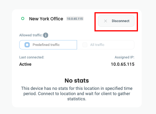 <figure><img src="https://content.gitbook.com/content/qA26Hk2bOkuJXJg4scJ4/blobs/nXvDRx3KFQCJVQ3IFWJD/defguard-client-disconnect.png" alt=""><figcaption></figcaption></figure>