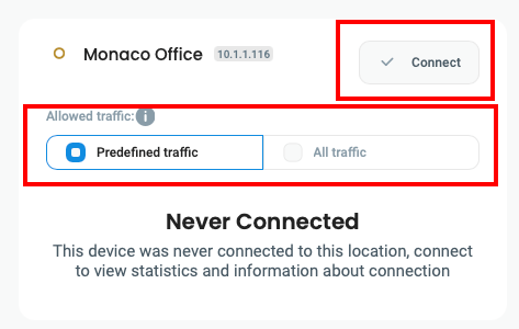 2. Select your location, allowed traffic then click **Connect.**