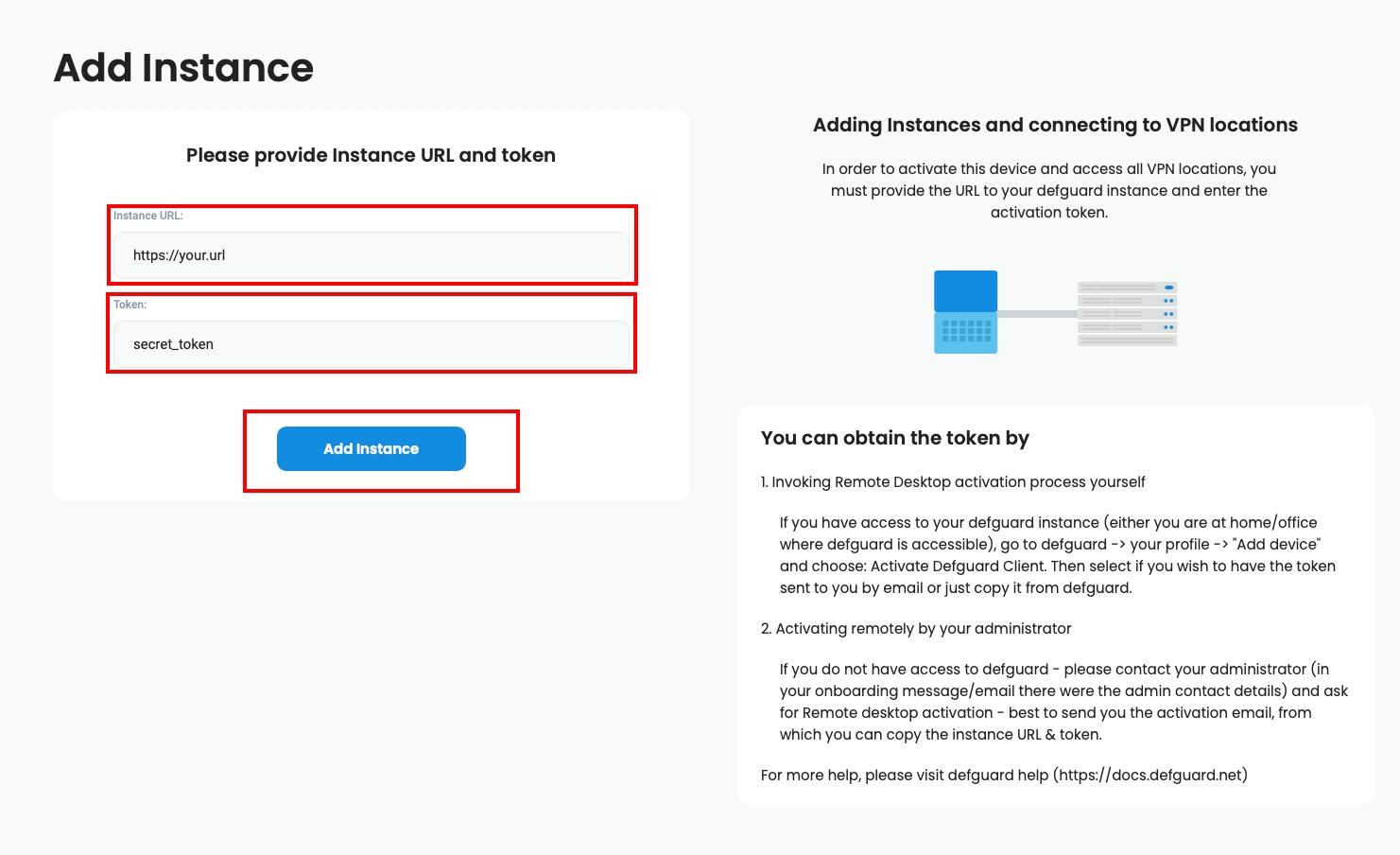 In this guide, you will learn how to add, remove and update Instance in Defguard desktop client.