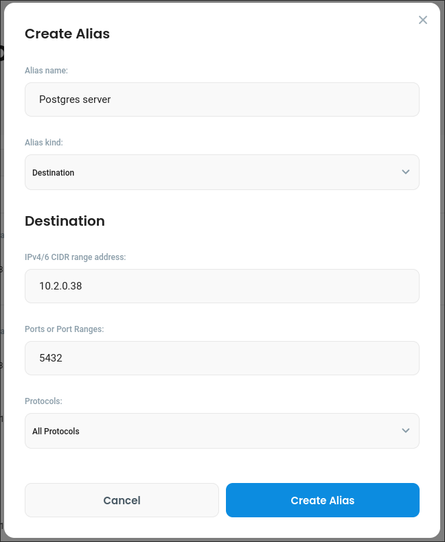 For example, you can define aliases for commonly used ports (e.g. 22 for SSH) or for services within your infrastructure (e.g. 1.2.3.4:5432 for a particular PostgreSQL server).