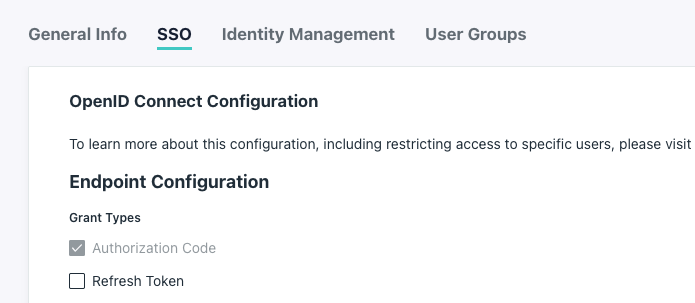 7. After finishing this configuration, you will be redirected to your newly created SSO Application's settings. Go to the "SSO" tab first.