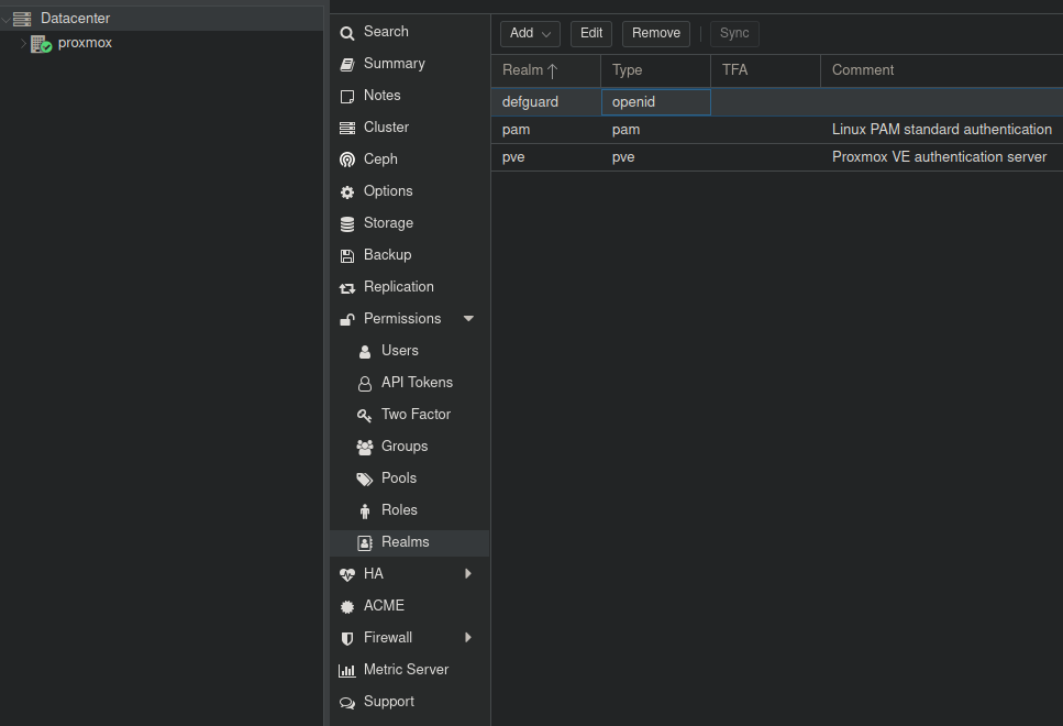 After logging out of Proxmox you should now be able to select your new realm and login with Defguard using OpenID Connect.