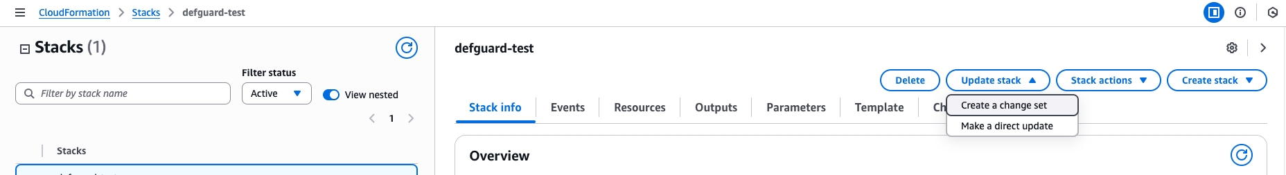 VpcCidr(optional): The CIDR block for the VPC in which Defguard will be deployed, default is10.0.0.0/16.VpcName(optional): The name of the VPC, default isdefguard-vpc.