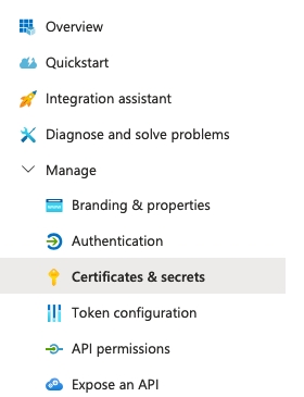 <TENANT_ID>placeholder in the base URL field.Now back in Microsoft Entra ID, still in your newly created application, go to Certificates & Secrets