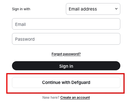 Set up your login with Defguard button to redirect to authorization endpoint, which is https://defguard.company.net/openid/authorize?