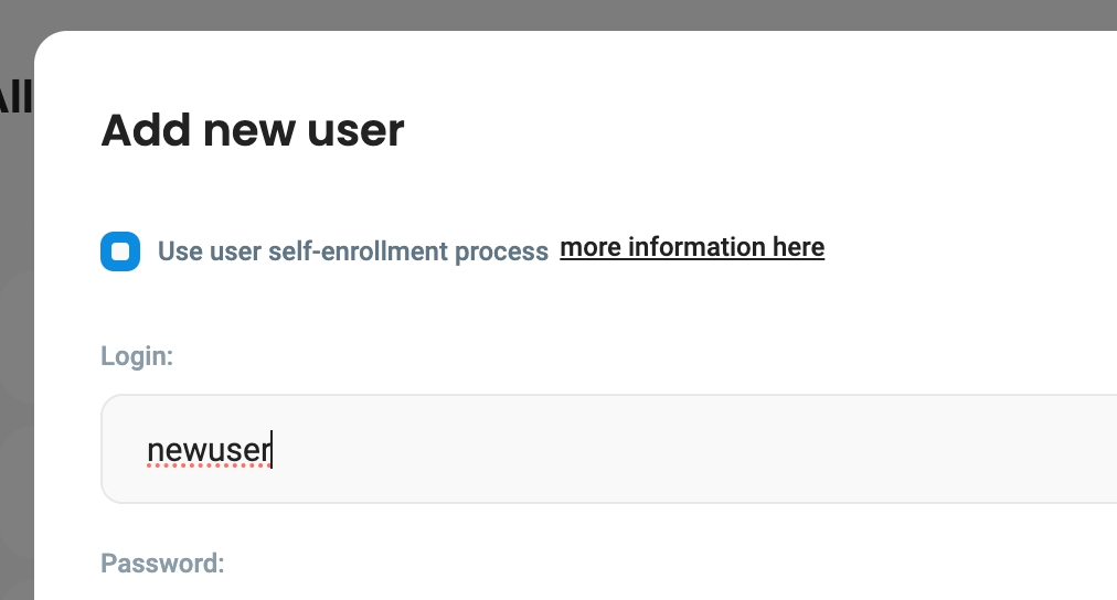 When adding a new user please select the option: Use user self-enrollment process: