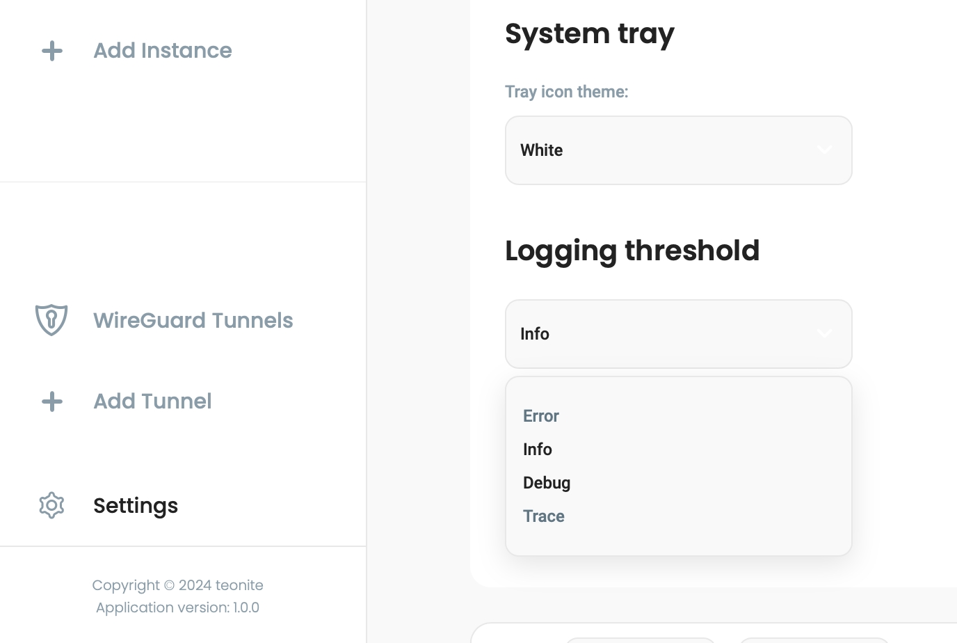 To download configuration and logs use appropriate buttons. You can attach them to bug report in our GitHub repository or send them in Matrix.