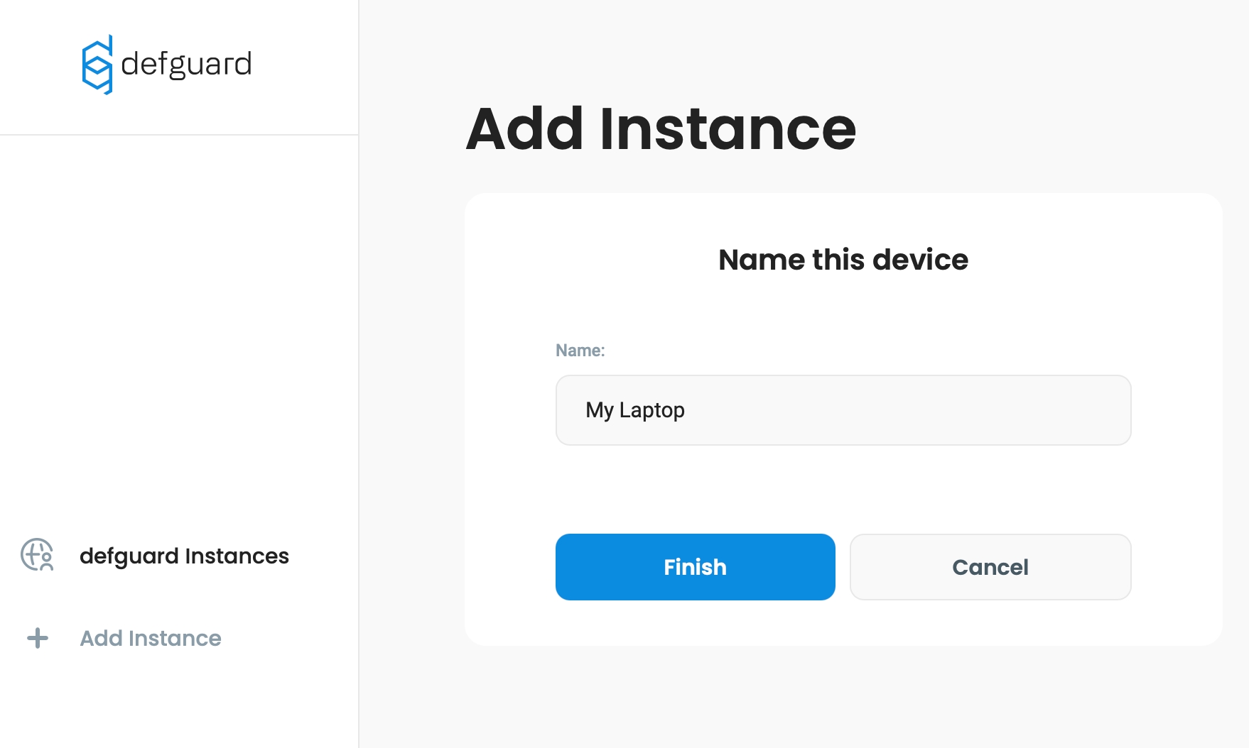 After that, the client will ask you to name your device (however you like), after that click finish: