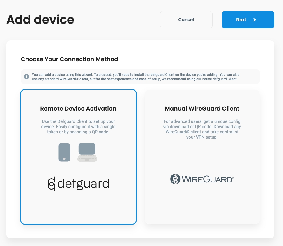 Then choose Defguard Client Remote Desktop Activation - which will easily configure your Desktop client: