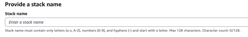 Choose a name for the stack. This can be chosen freely but must be unique across your deployed stacks.