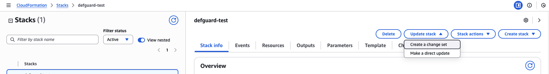 To modify an existing stack deployed from the template, you can use the AWS Console, navigate to the CloudFormation service, select your stack, click on "Update stack" and then choose "Create a change set".