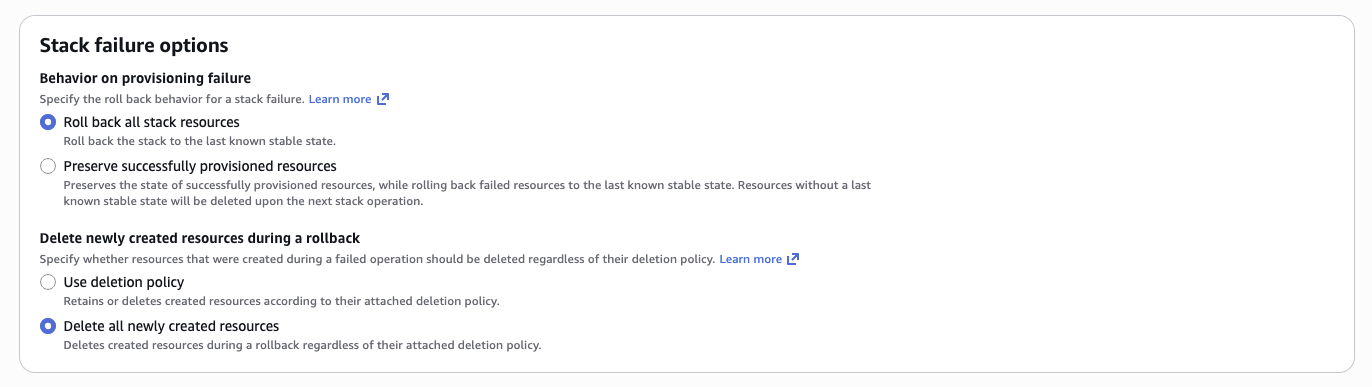 Next, select the behavior on deployment failure: