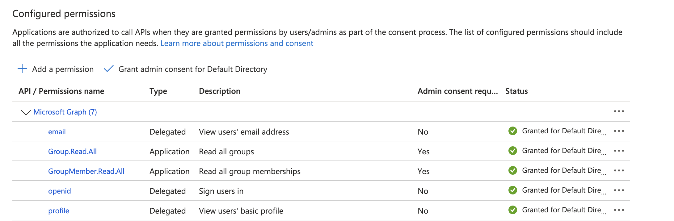 Now grant admin consent for the permissions using the "Grant admin consent for" button\