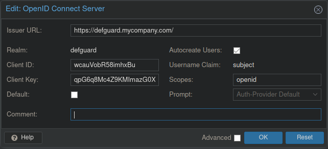 Defguard)Client ID: Client ID you copied after creating Defguard OpenID app