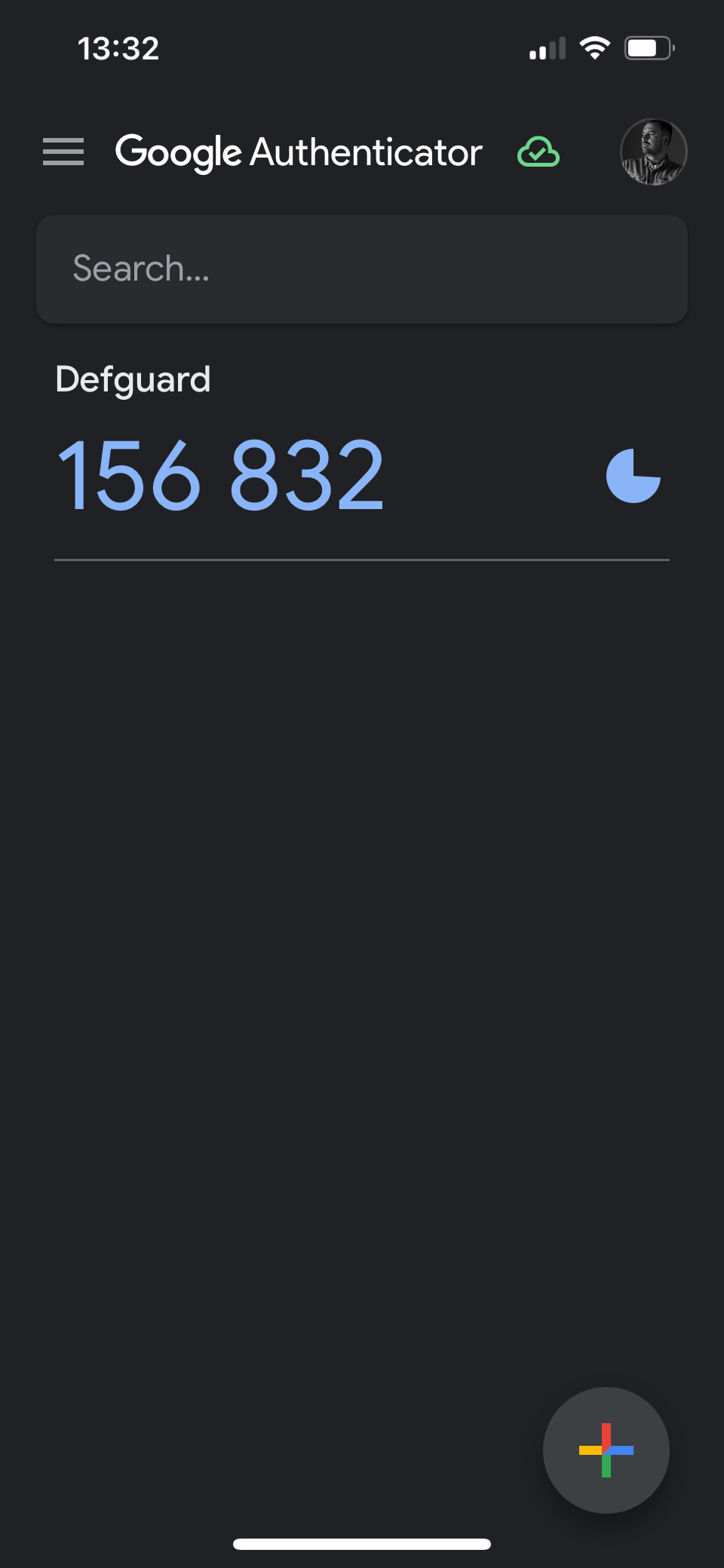 After doing that, a new screen will show on the Authenticator app, that will generate codes for Defguard: