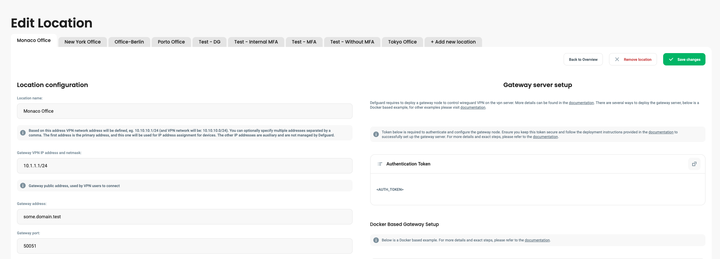 * `DEFGUARD_TOKEN` ,`-t <TOKEN>` - Token displayed in the Defguard Core web UI after completing the network wizard. It can be copied from the "Authentication Token" section on the Location Settings page.