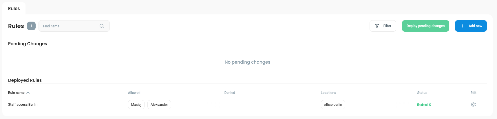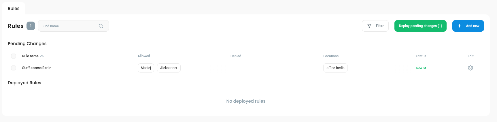 Now, click on **Deploy pending changes (1)** button. After that, the rule should be applied on the *Office-Berlin* location.