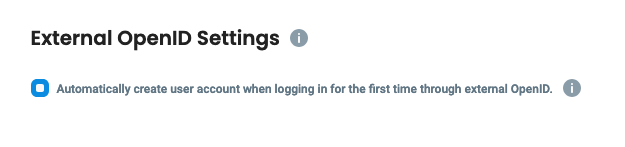 If you disable the option above, new users won't be able to automatically go through the enrollment. You will need to create their accounts by hand (with the same email address as the one they have set on your OIDC provider's side) and only then they will have an option to activate it by logging through the provider.