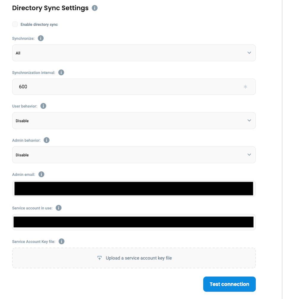The following configuration options are currently available in the directory synchronization menu specifically for the Google provider: