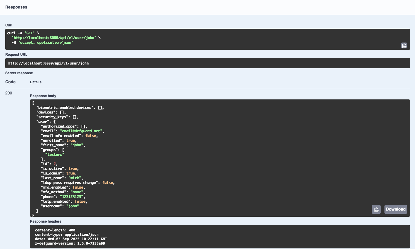 curl -H "Authorization: Bearer <token>" <YOUR_DEFGUARD_URL>/api/v1/me