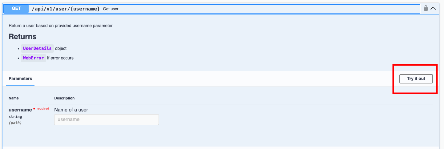 3. Click on endpoint and select **Try it out** option.