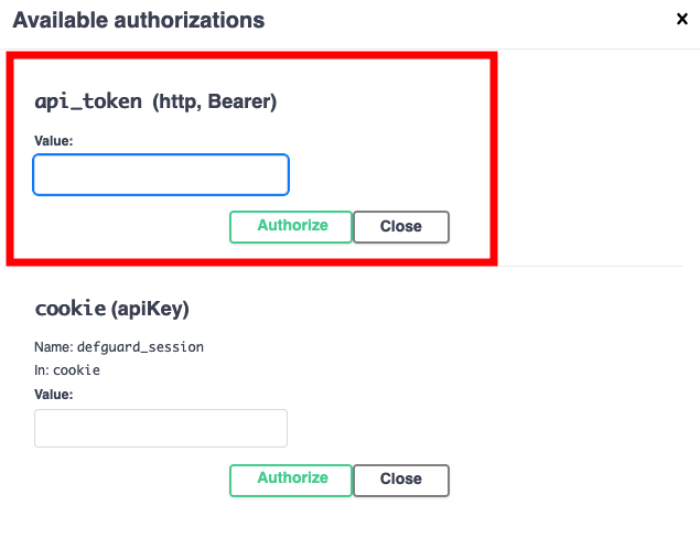 Defguard API uses a standard **Bearer token authentication** scheme.