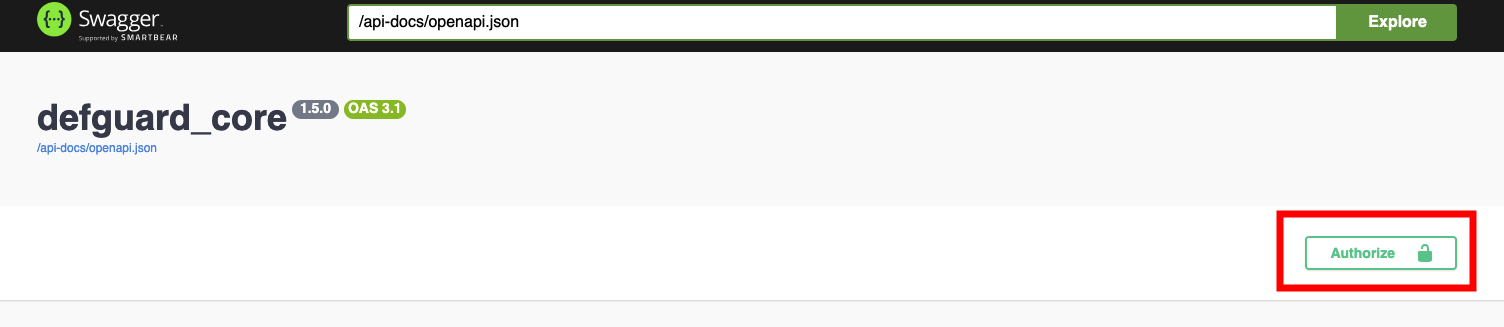API specification JSON in OpenAPI format can also be fetched from `<YOUR_DEFGUARD_URL>/api/v1/api-docs`.