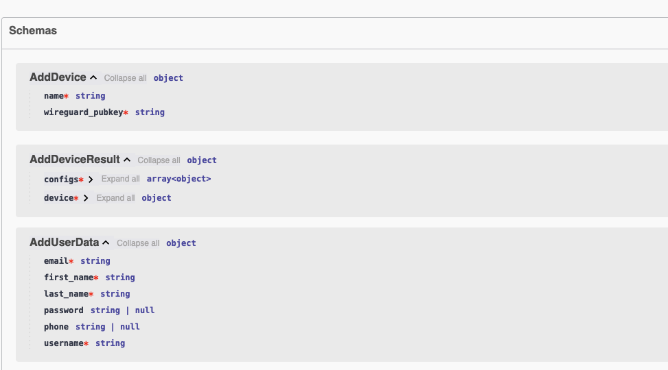 If you are looking for definitions of types, you can scroll down to **Schemas** section.