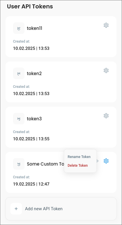 In the API token list you can later rename or delete a token:
