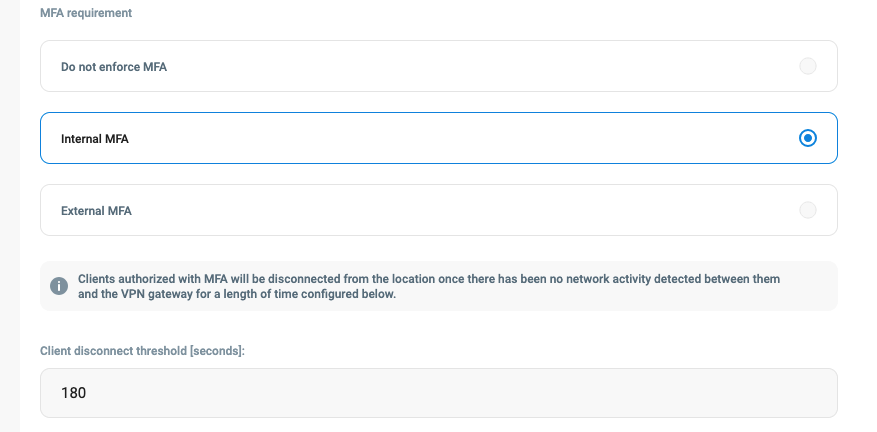 Enabling Internal MFA for a desired VPN Location is done by: